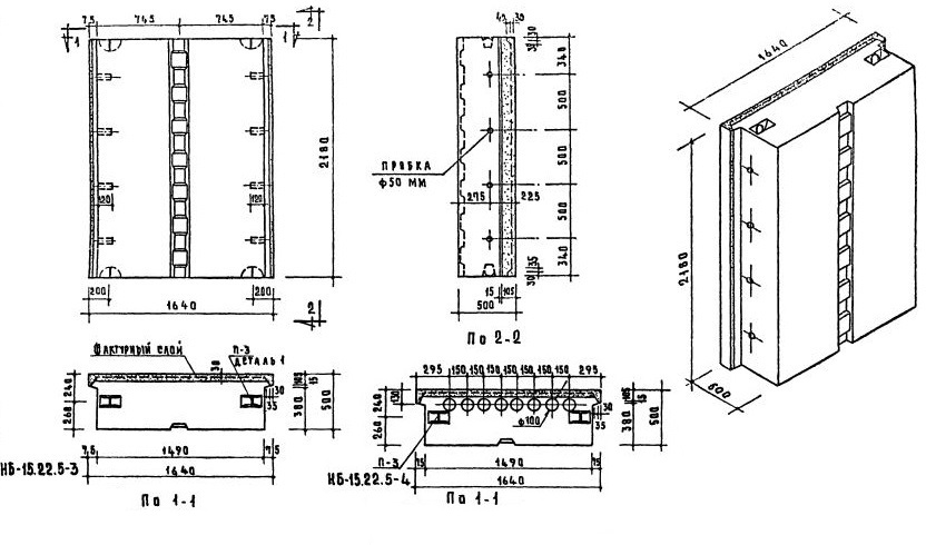 Стеновые легкобетонные блоки толщиной 50 см по Серии 1.133-1.